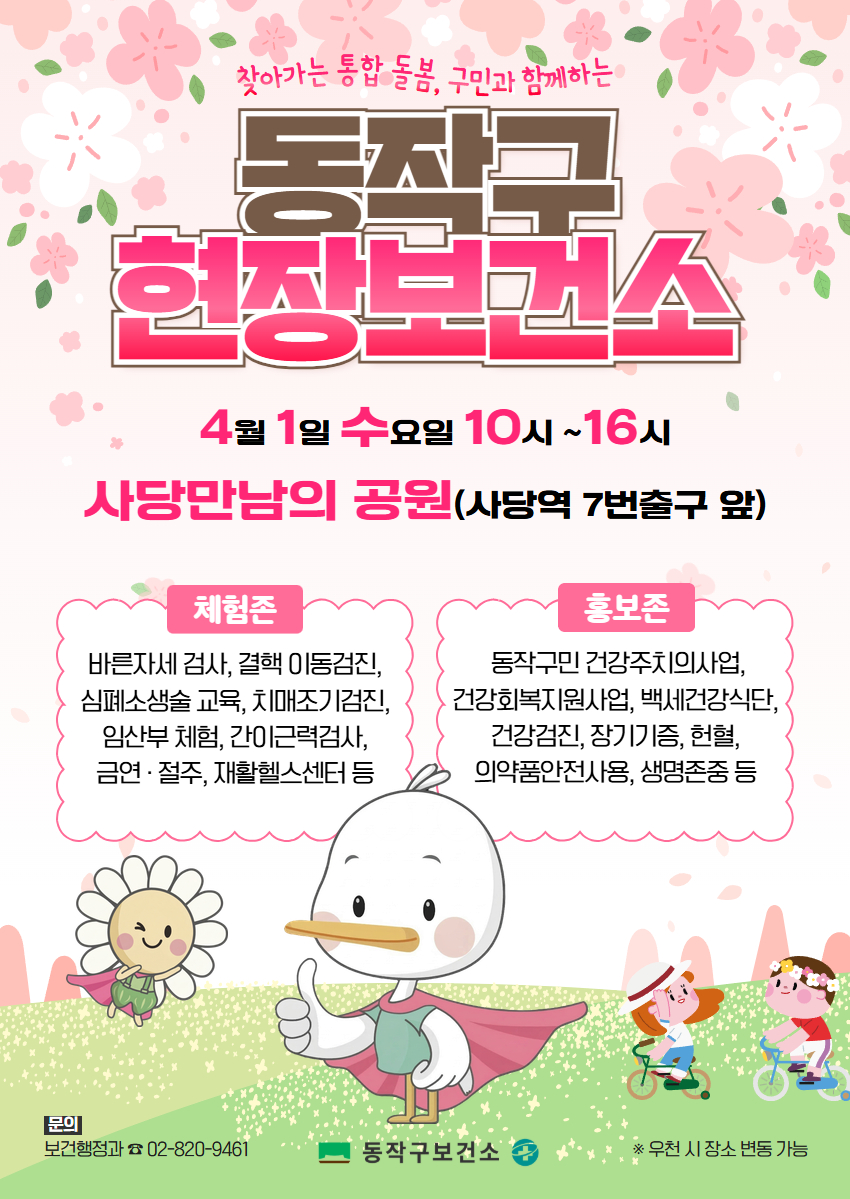 건강생활 실천환경을 조성하고자 2026년 "동작구 현장보건소" 를 아래와 같이 운영하오니,