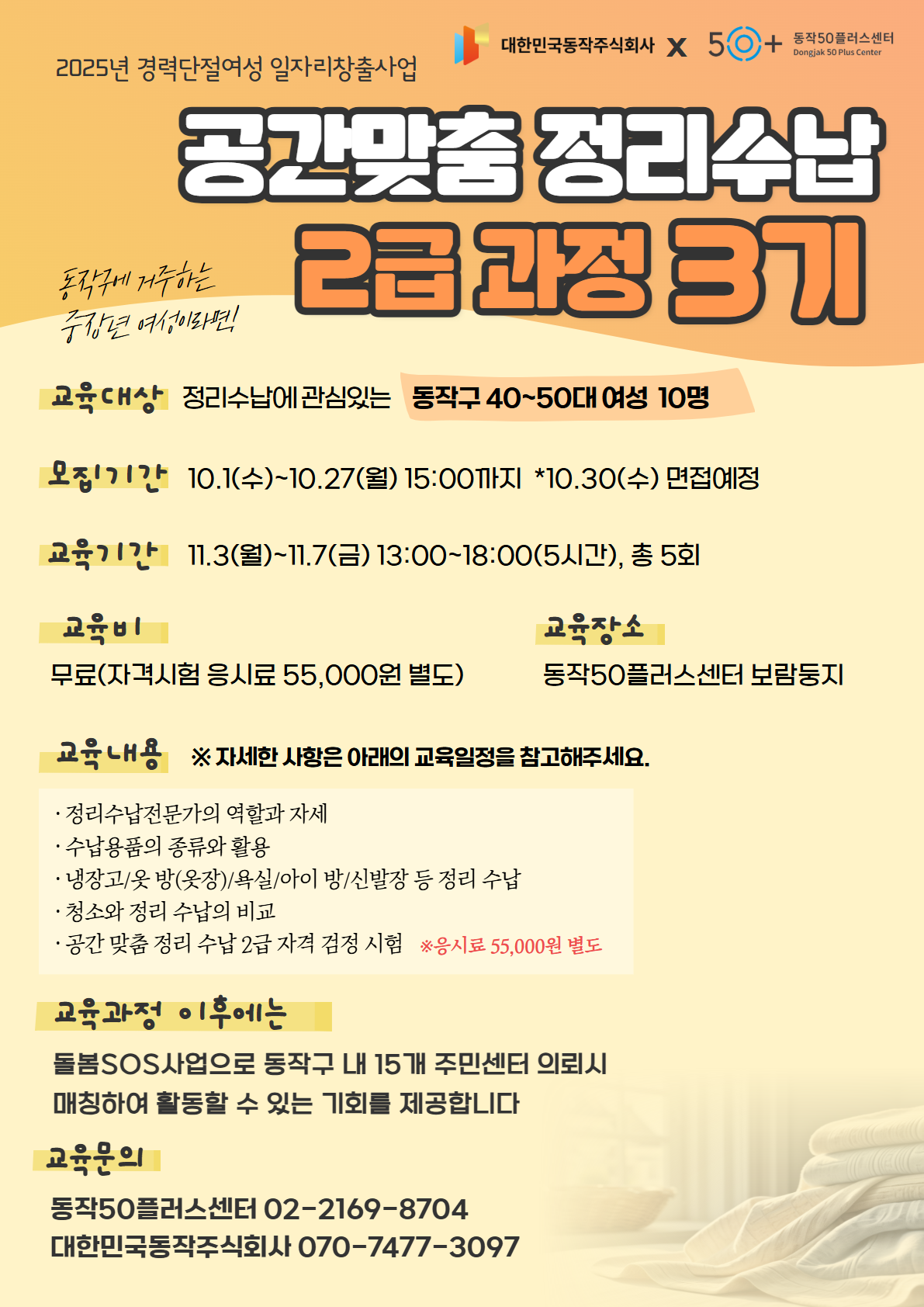 [동작구 전액지원, ‘공간맞춤 정리수납 2급 과정’ 3기 교육에 참여하세요]