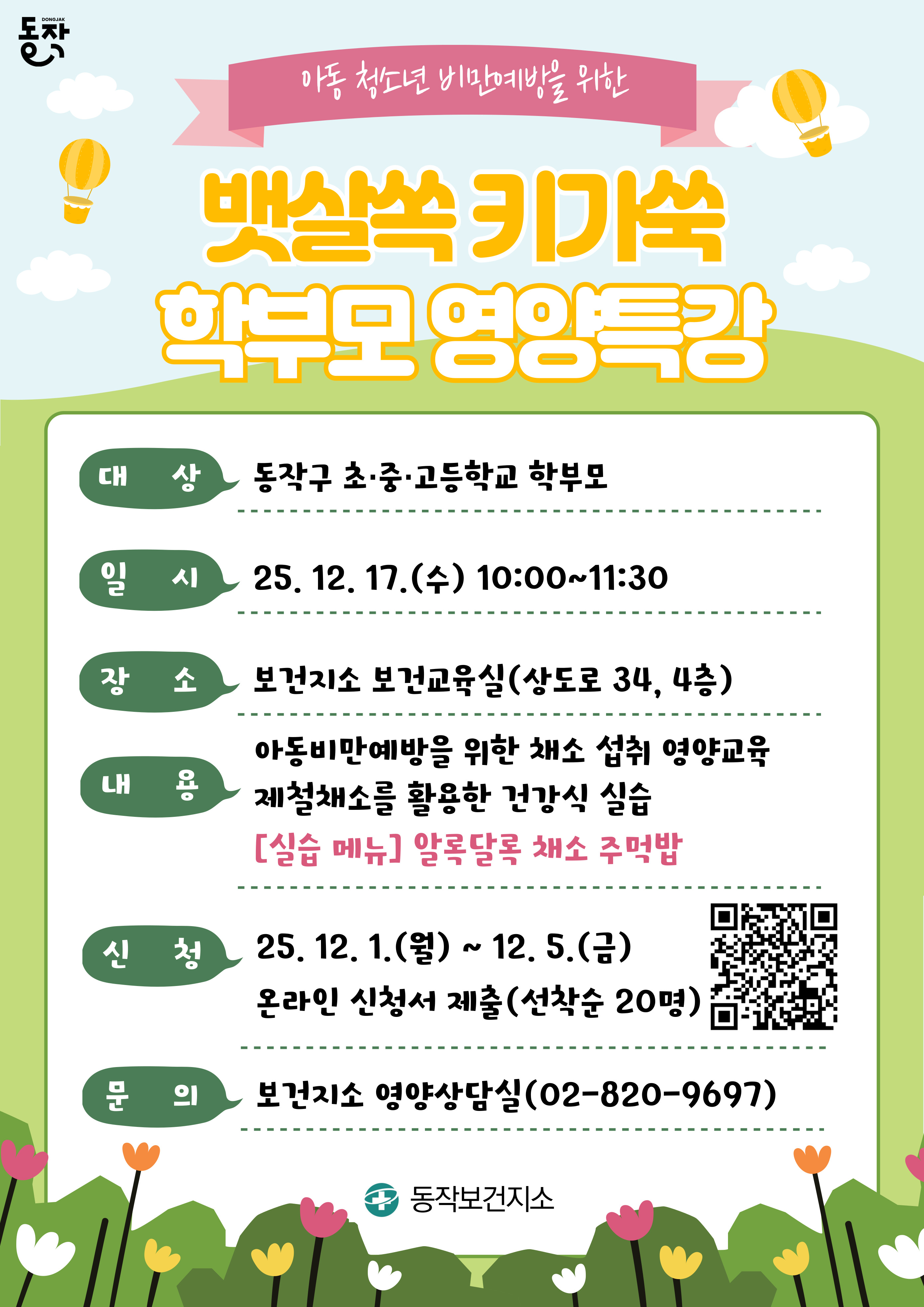 아동 청소년 비만예방 및 건강한 식습관 실천을 위해 영양특강을 진행하오니,