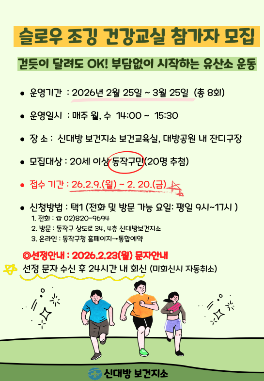 신대방 보건지소 「슬로우조깅 건강교실」 참여자 모집