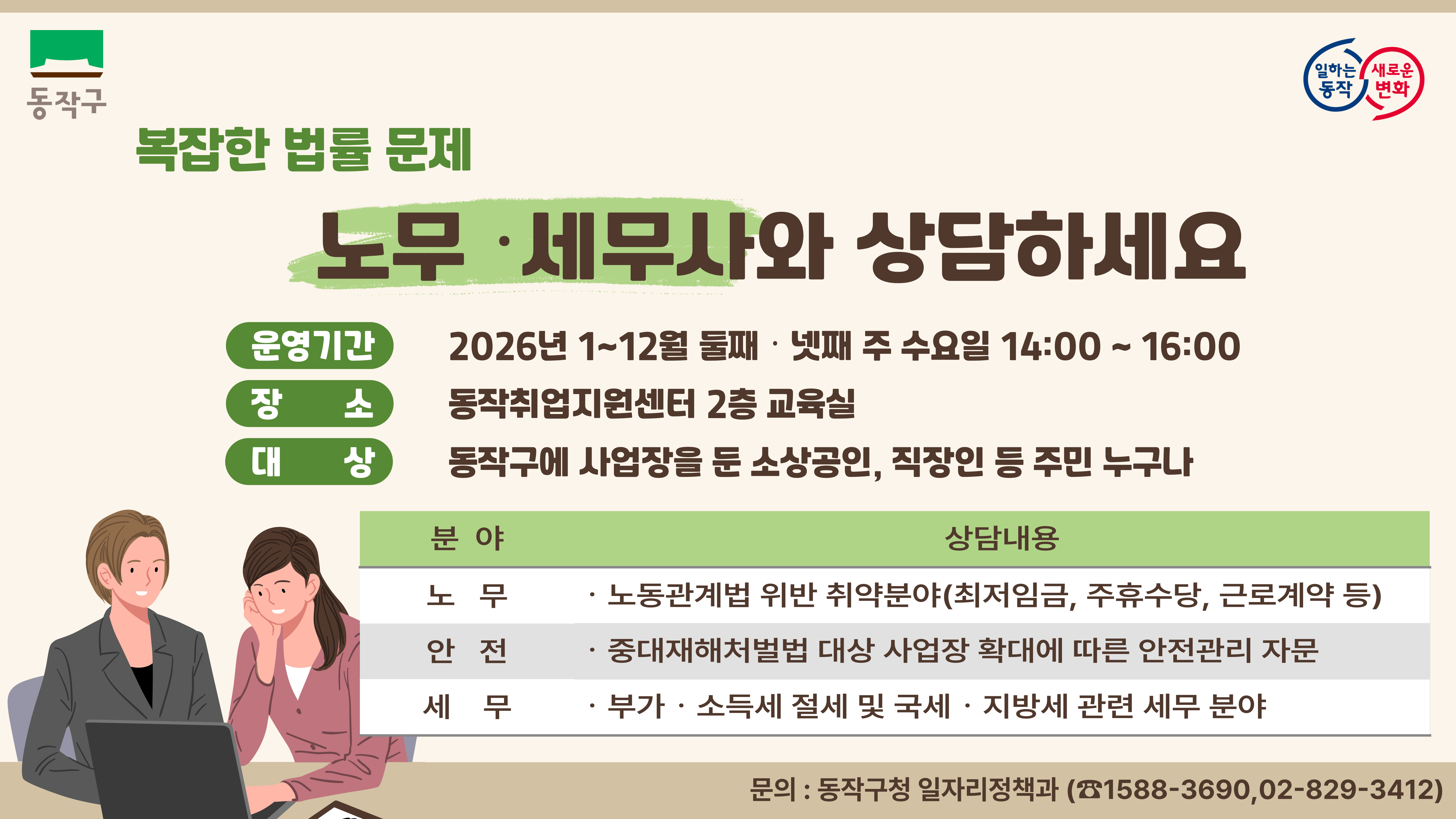 -대 상:노무·세무상담이 필요한 동작구에 사업장을 둔 소상공인,직장인,주민 누구나