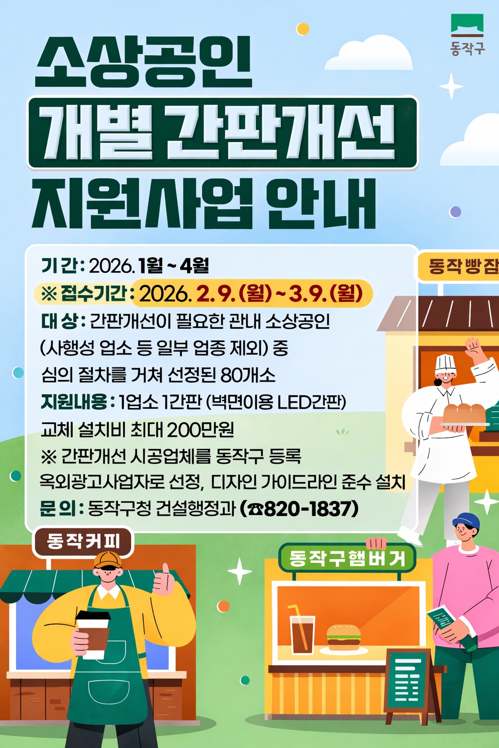 ※ 간판개선 시공업체를 동작구 등록 옥외광고사업자로 선정, 디자인 가이드라인 준수 설치