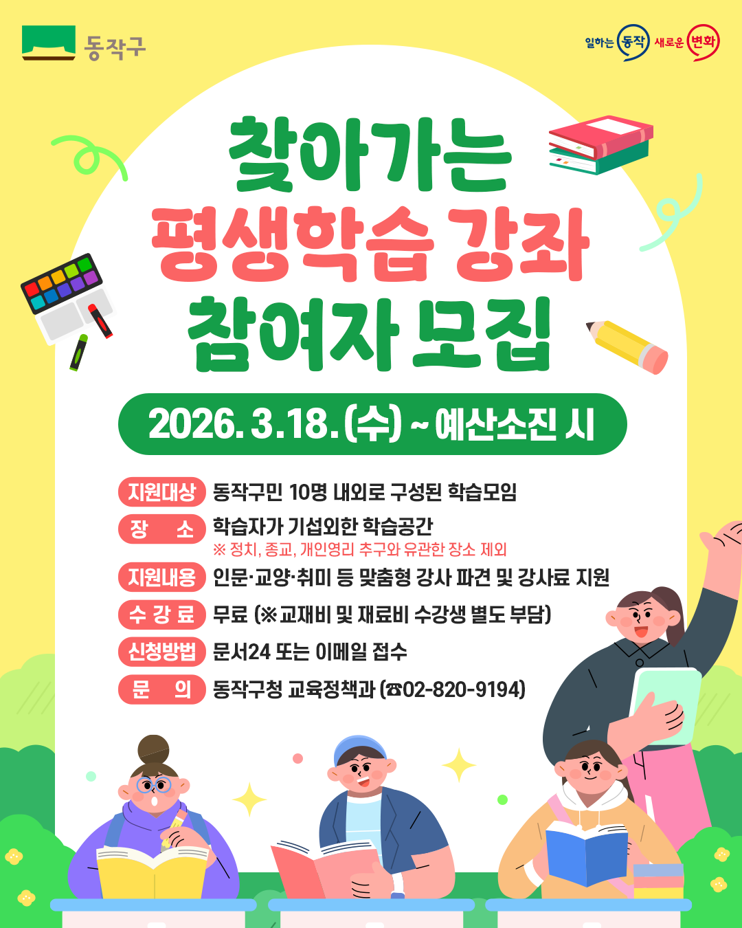 찾아가는 토핑(평생학습) 강좌 수강생 모집