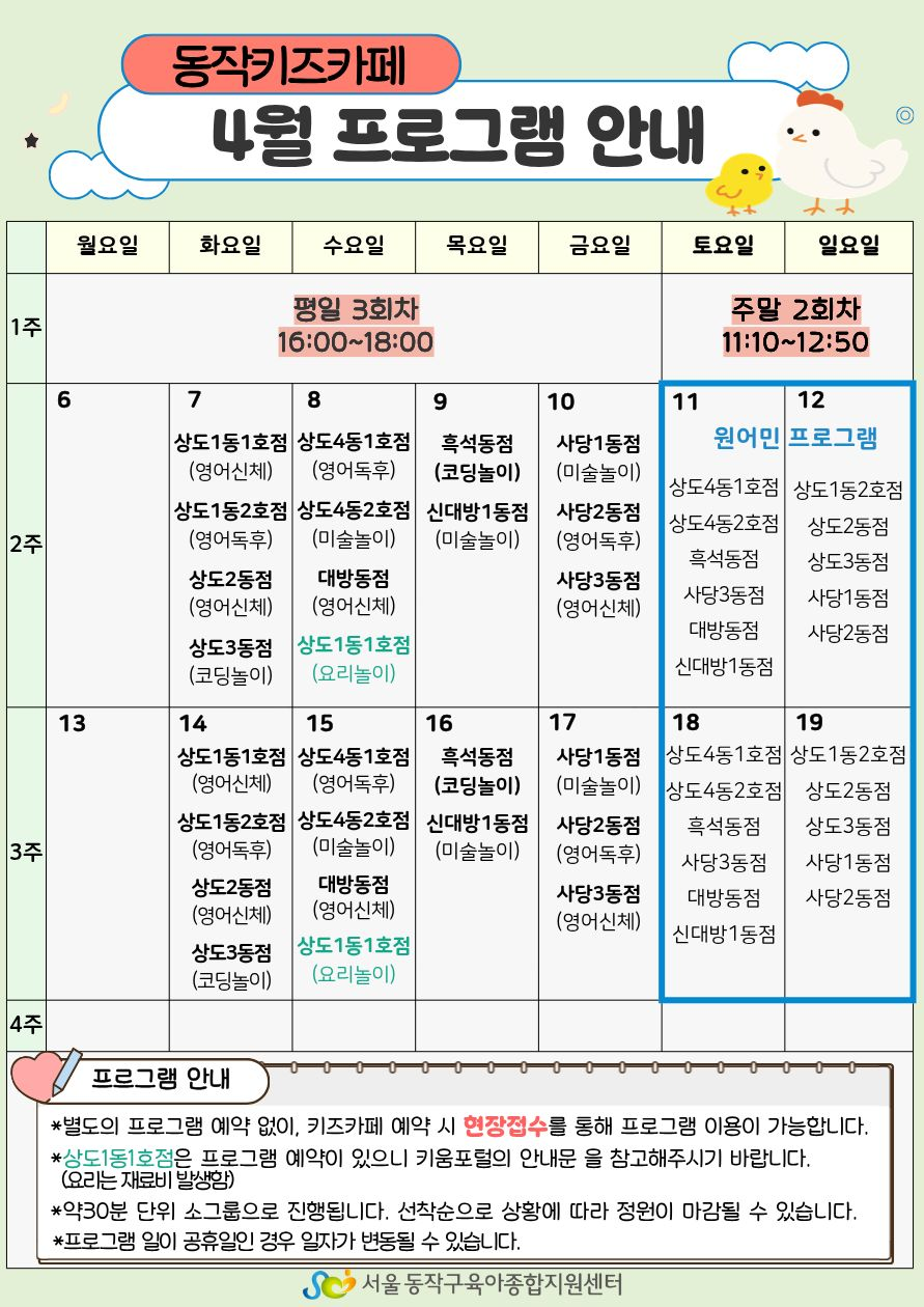 4월 동작키즈카페 프로그램 안내