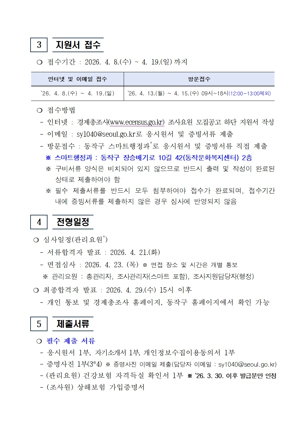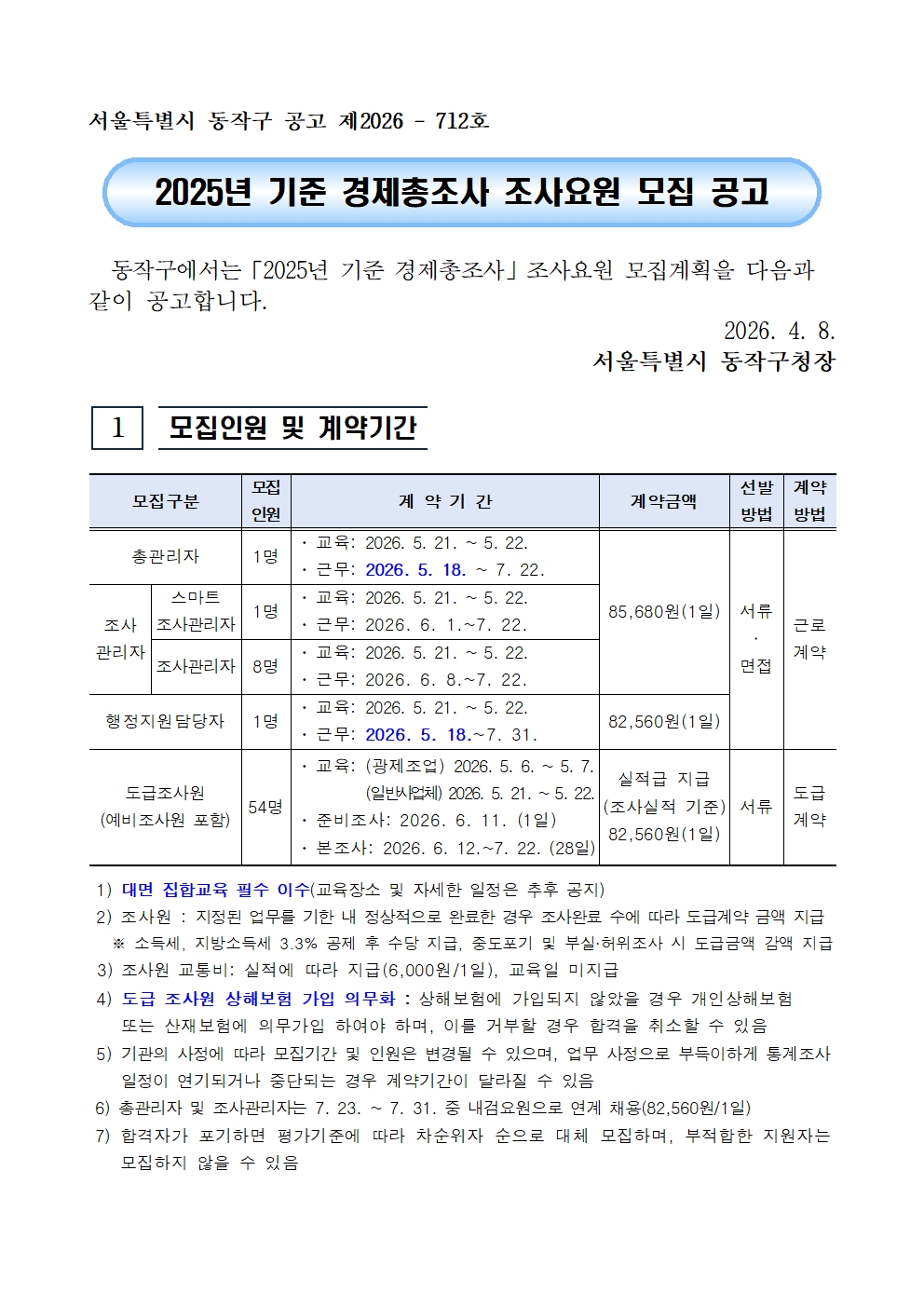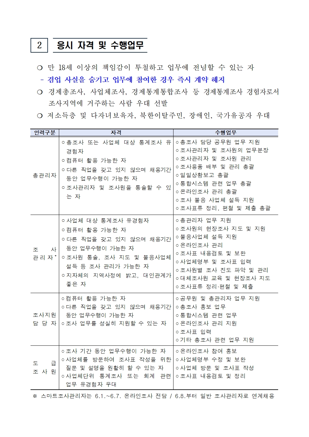 ※ 자세한 사항은 첨부파일 "2025년 기준 경제총조사 조사요원 모집 공고"를 반드시 확인 후 지원하시기 바랍니다.