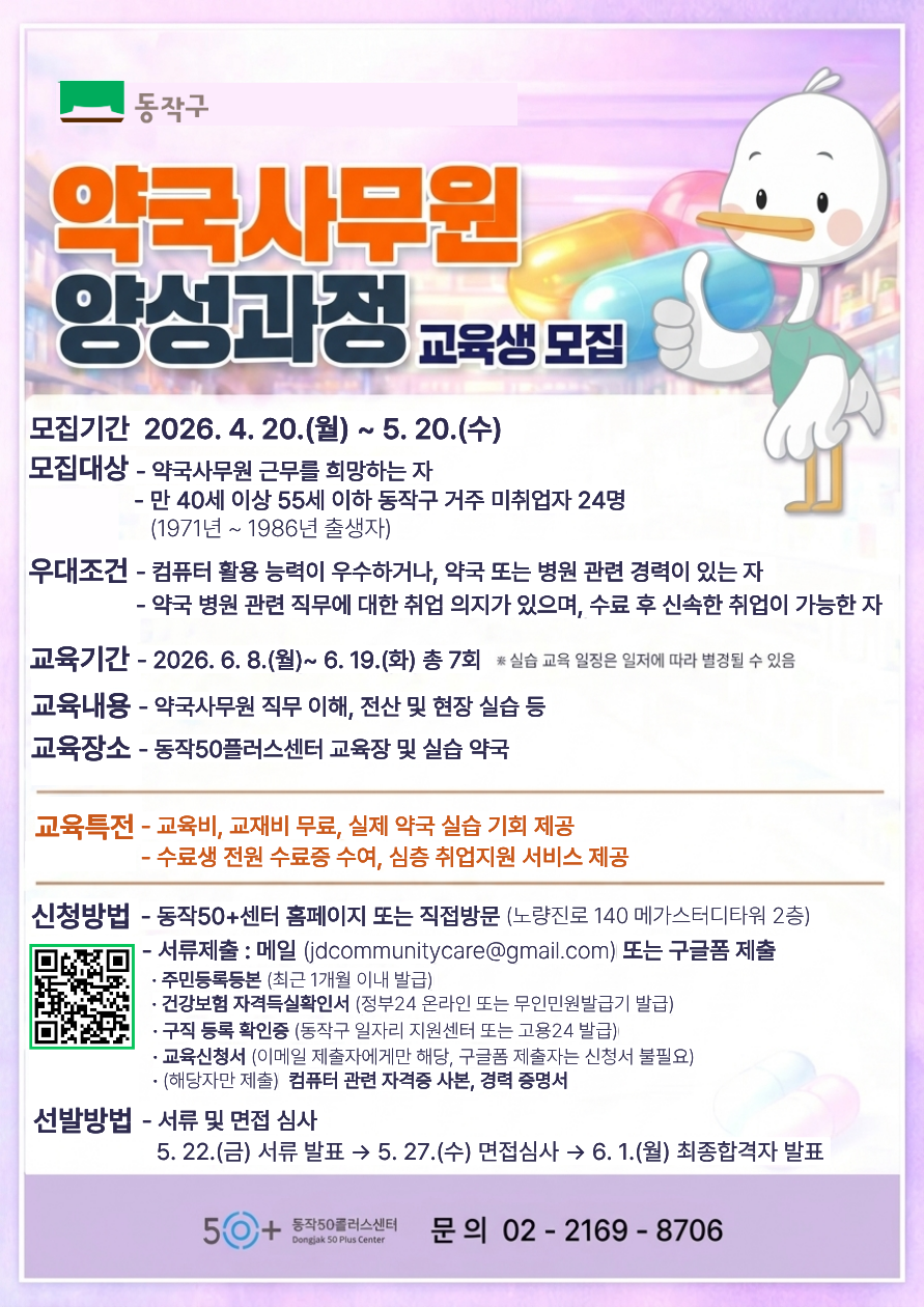 [동작구 전액지원] 약국사무원 양성과정 교육생 모집