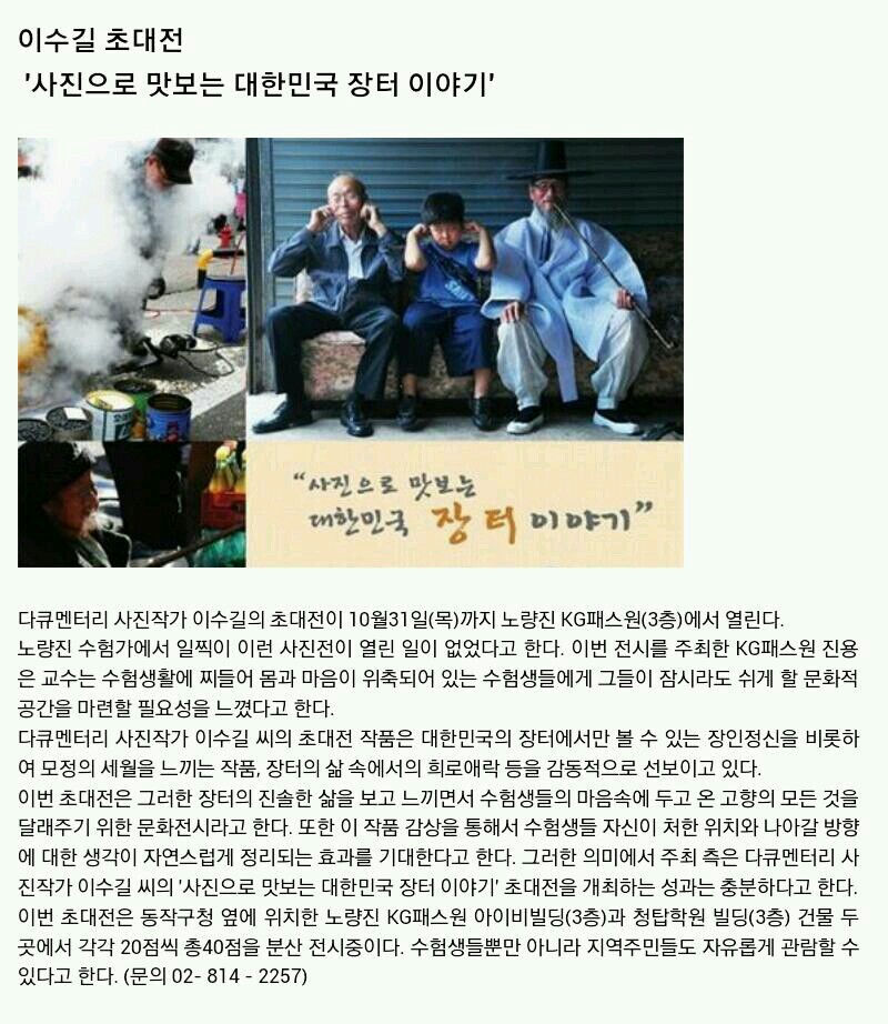 이수길 초대전 "사진으로 맛보는 대한민국 장터 이야기"