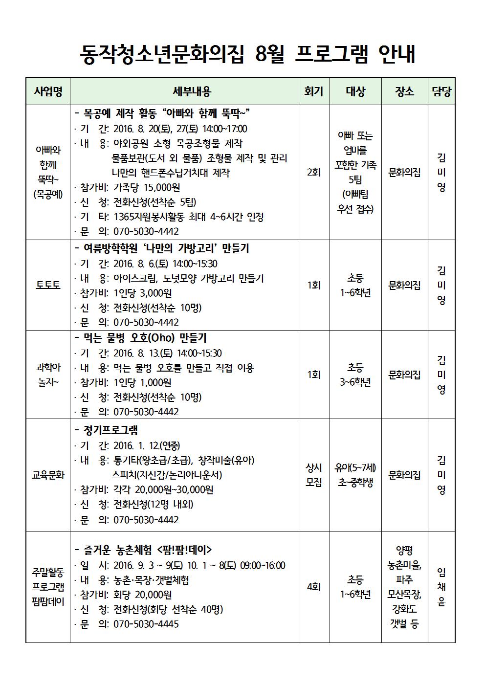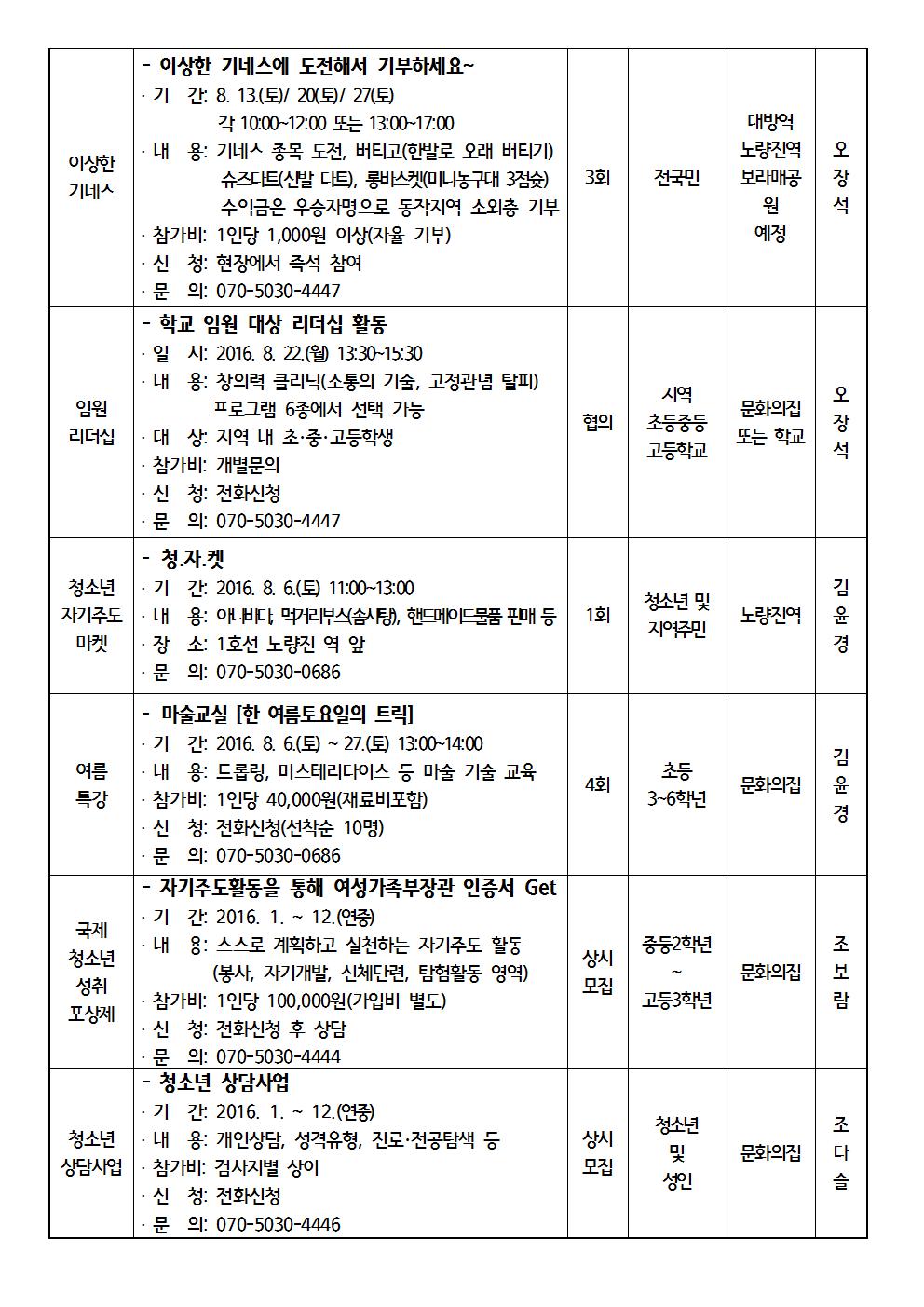 자세한 사항은 동작청소년문화의집 홈페이지 참조