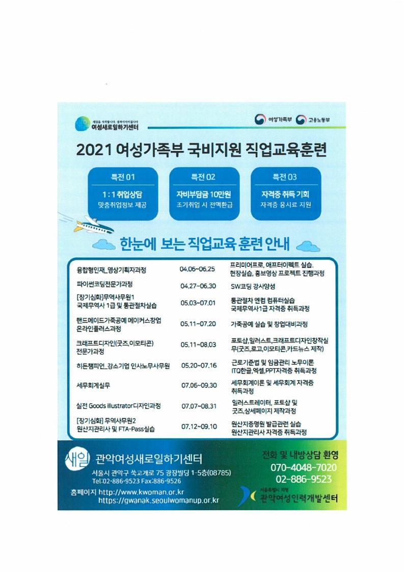 2021 여성가족부 국비지원 직업교육훈련생 모집