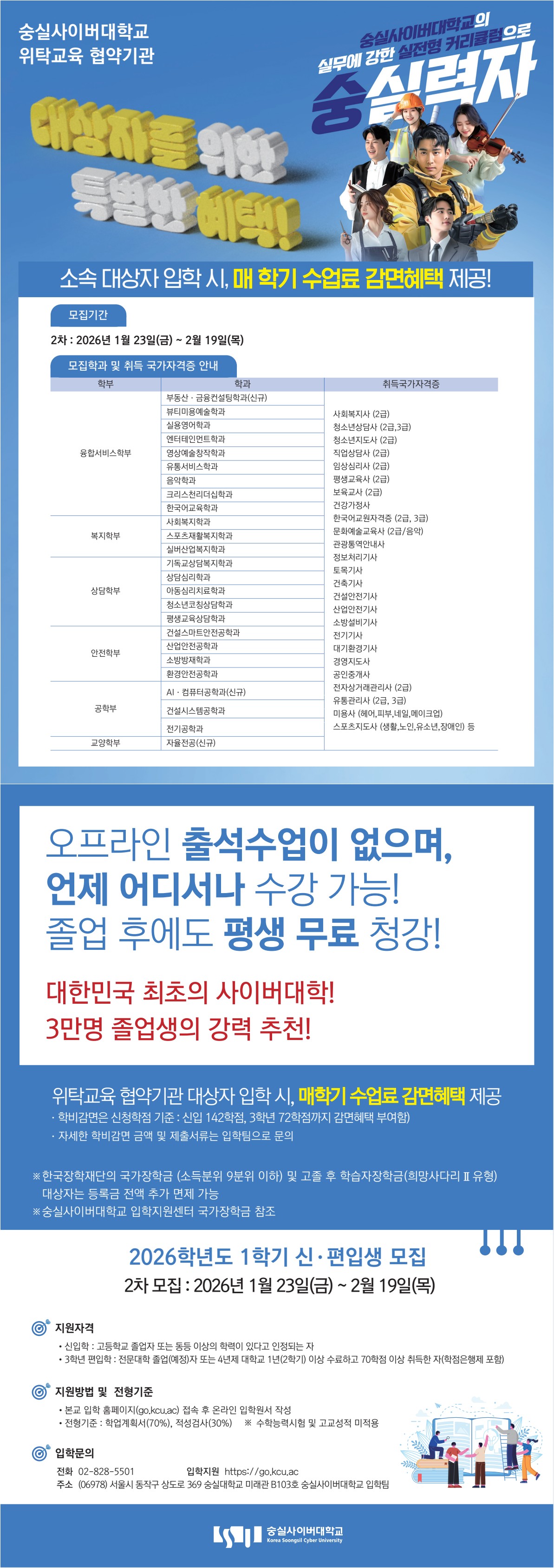 - 숭실사이버대학교 입학팀 02)828-5501, https://go.kcu.ac