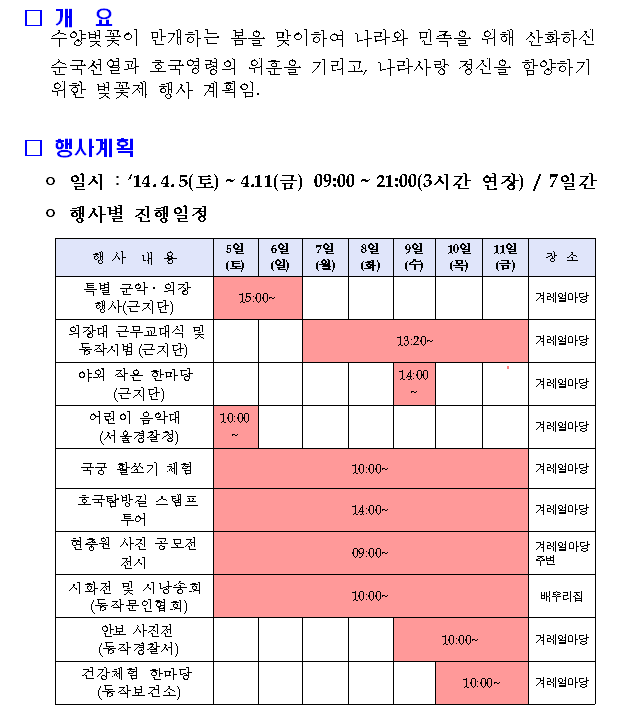 (국립서울현충원)「수양벚꽃과 함께하는 열린현충원」행사 안내