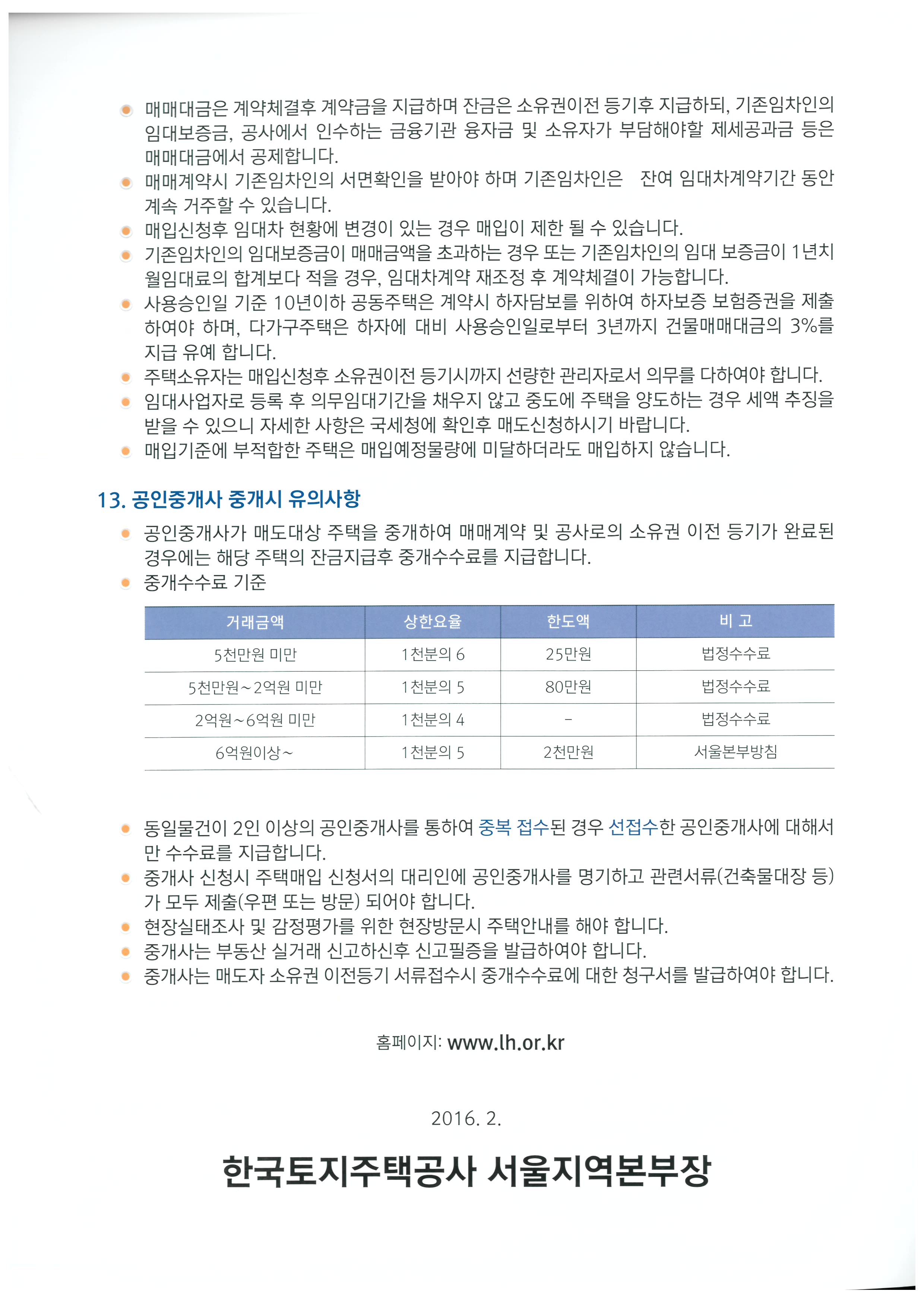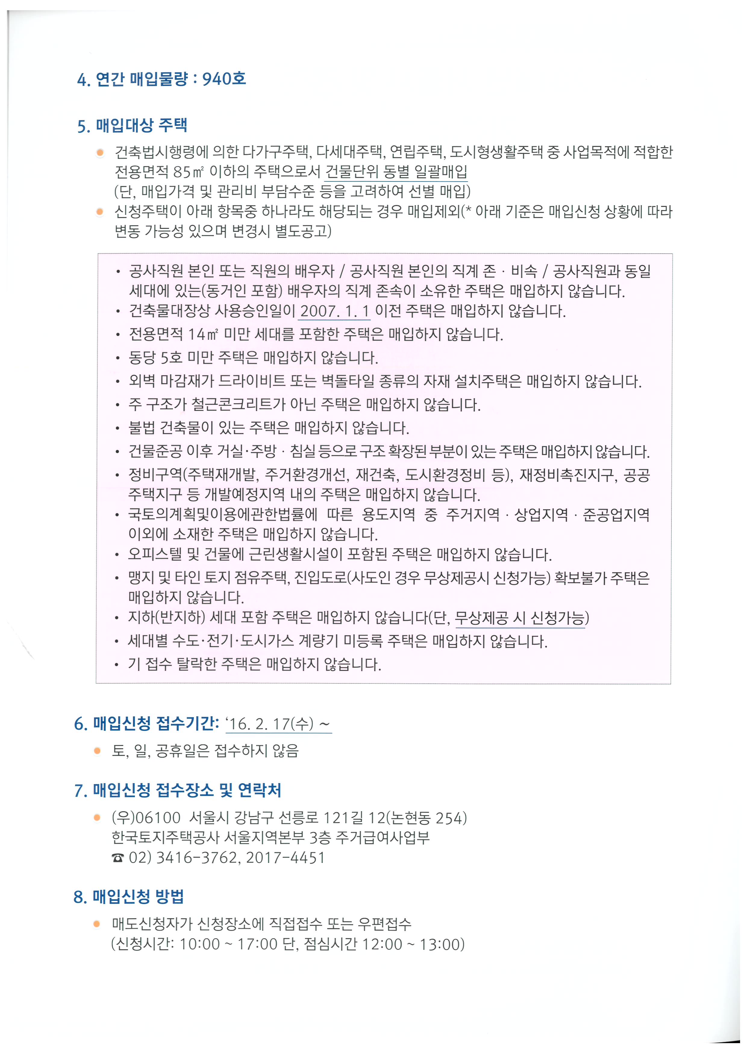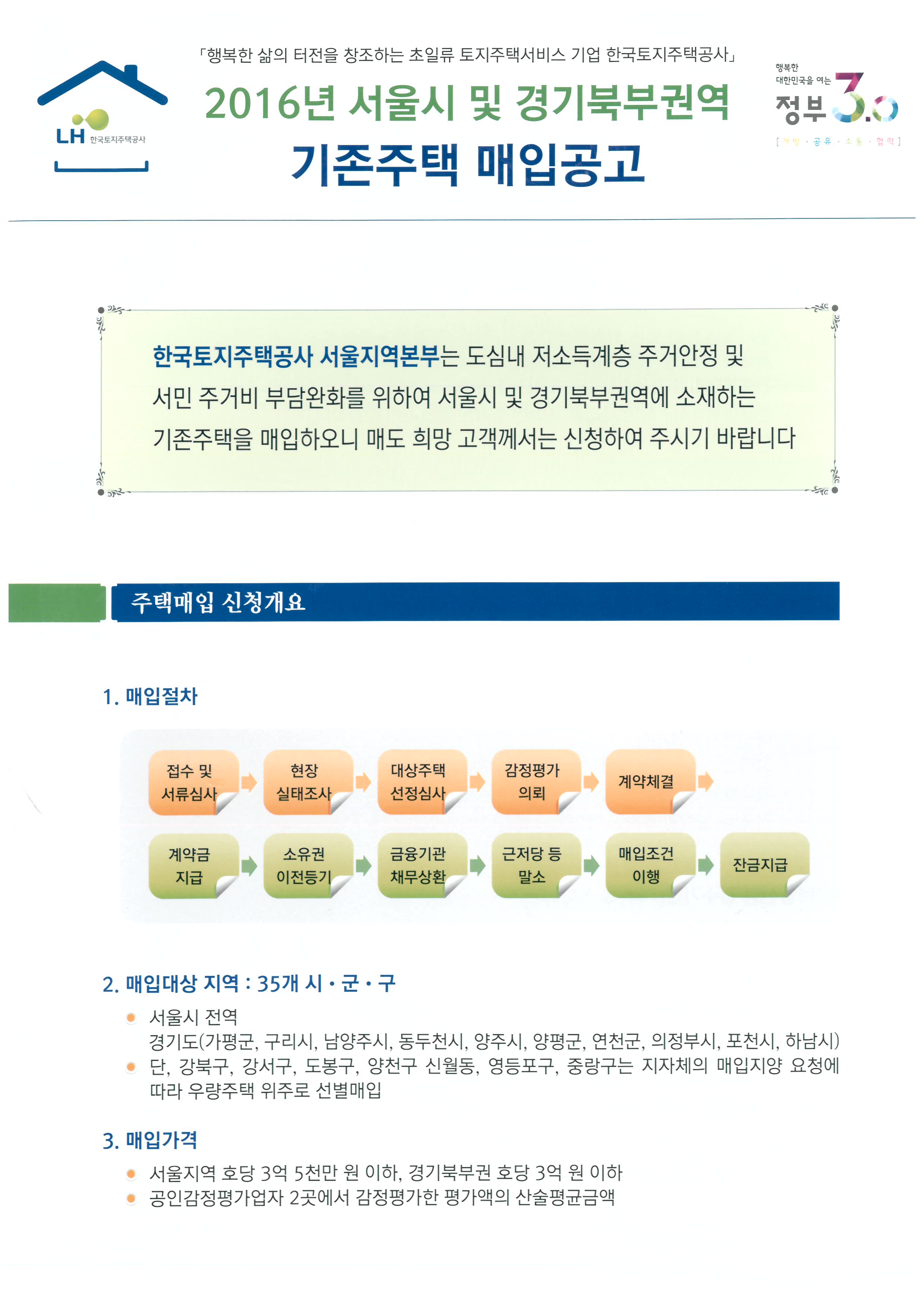 2016년 서울시 및 경기북부권역 (정기 1차) 기존주택 매입공고