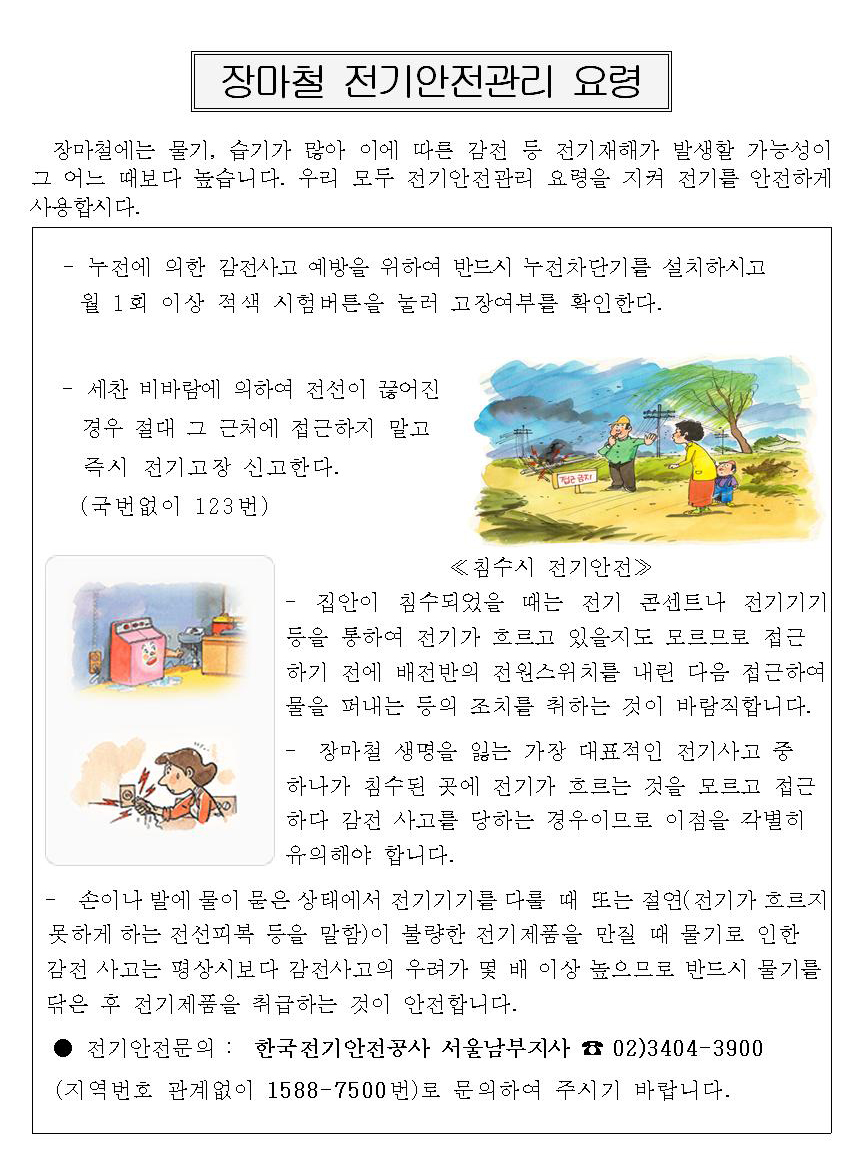 ● 전기안전문의 : 한국전기안전공사 서울남부지사 ☎ 02)3404-3900