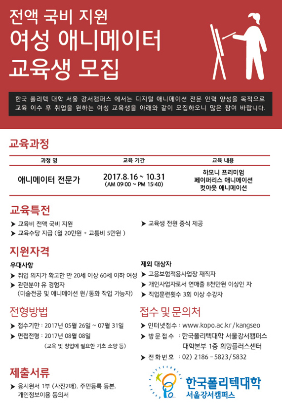 한국폴리텍Ⅰ대학은 고용노동부 산하 국책특수대학으로서 교육비 전액을 국가에서 부담하며 취업애로계층인 경력단절여성의 직업역량 강화 및 경제활동참여 활성화를 위한 맞춤형 여성특별 과정을 운영 교육생을 모집 합니다.