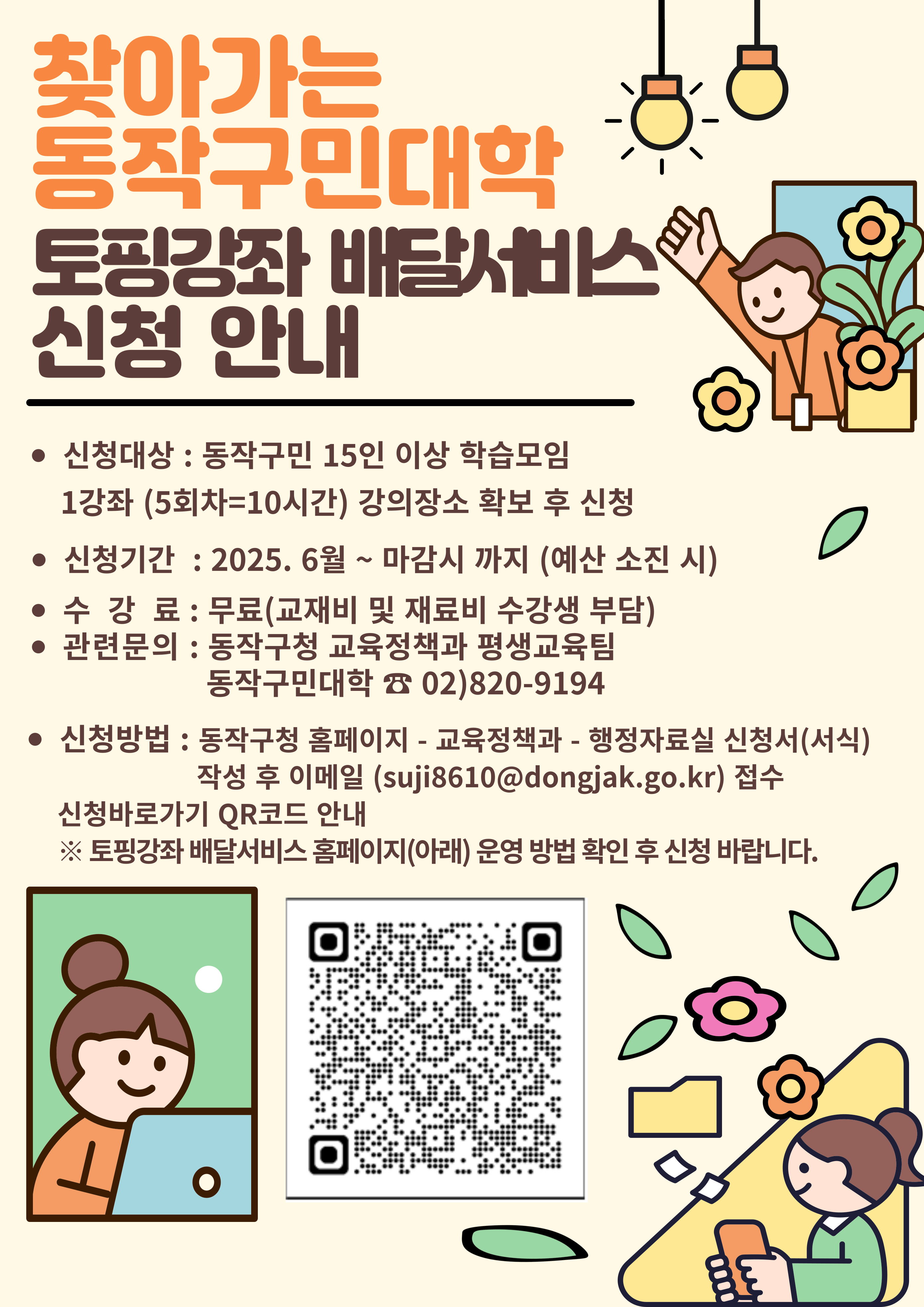 「 2025년 찾아가는 동작구민대학 토핑강좌 배달서비스 」 신청 안내