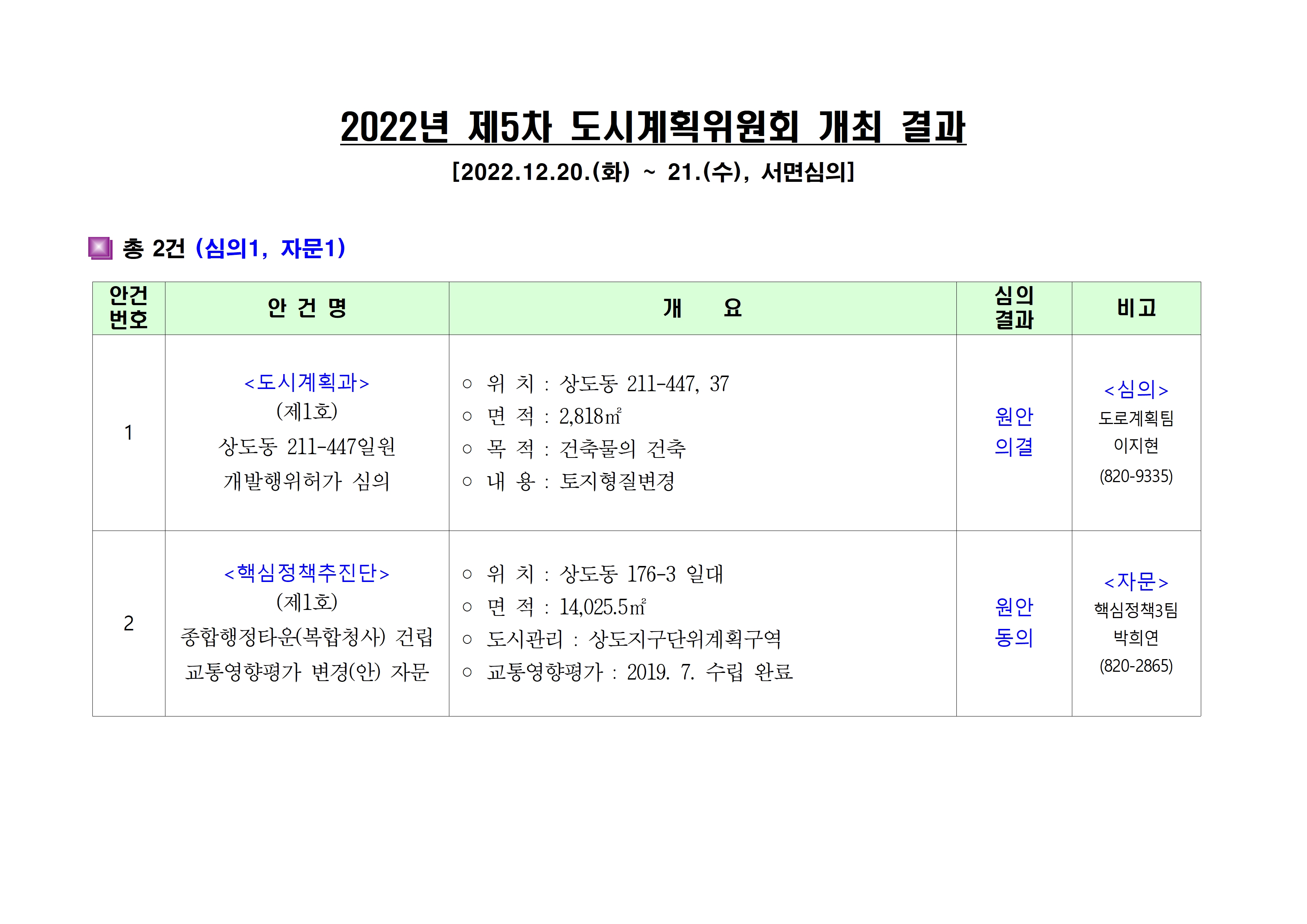 2022년 제5차 동작구 도시계획위원회 개최결과