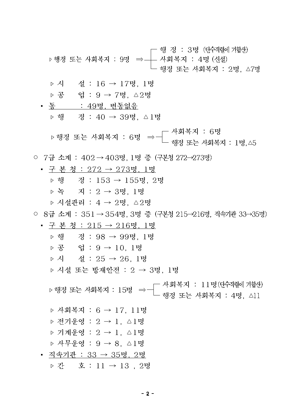 서울특별시 동작구 지방공무원 정원 규칙 일부개정규칙안