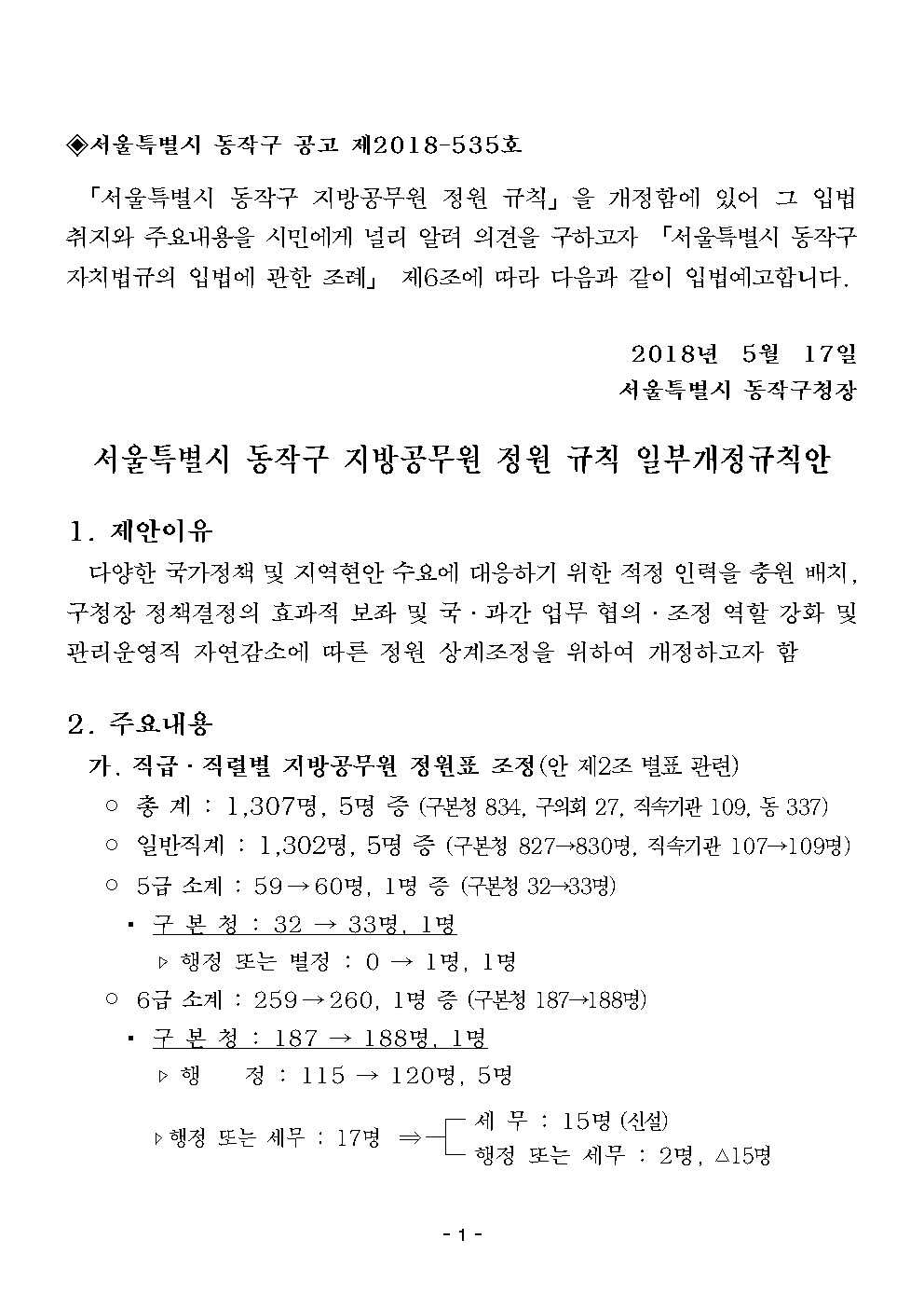 동작구 지방공무원 정원 규칙 일부개정규칙안 입법예고문.hwp