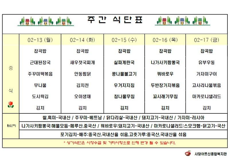 주간식단표(2.13.~2.17.)