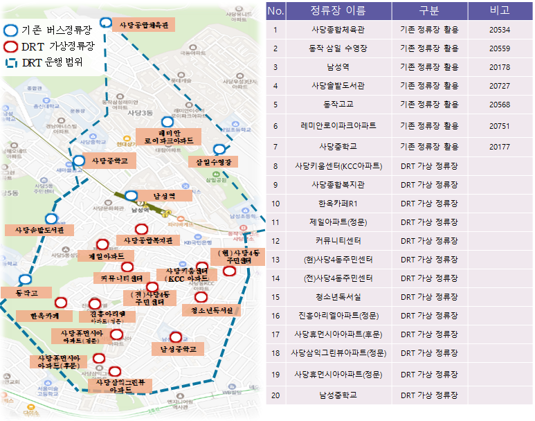 운행구간 및 정류소 위치