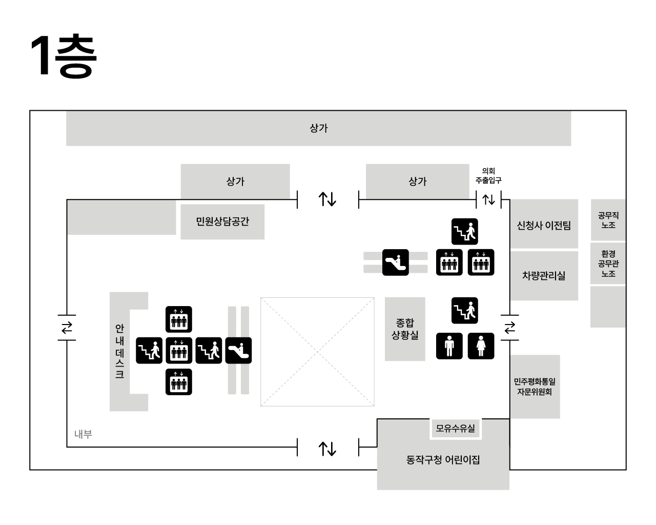 | 1F | 종합상황실, 민원안내데스크, 어린이집 | |