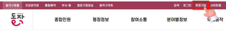 홈페이지 첫 화면에서 [회원가입]을 클릭해 주세요.