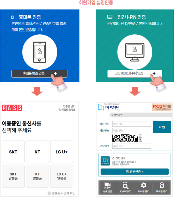 [휴대폰 인증하기]를 선택하신 경우 반드시 본인명의로 발급받은 휴대폰으로만 인증이 가능합니다.