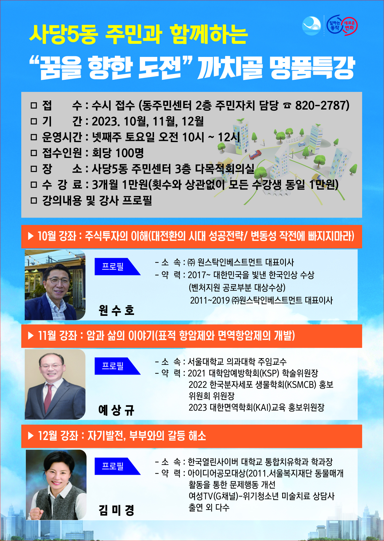 사당5동 주민을 위한 "꿈을향한도전" 까치골 명품특강
