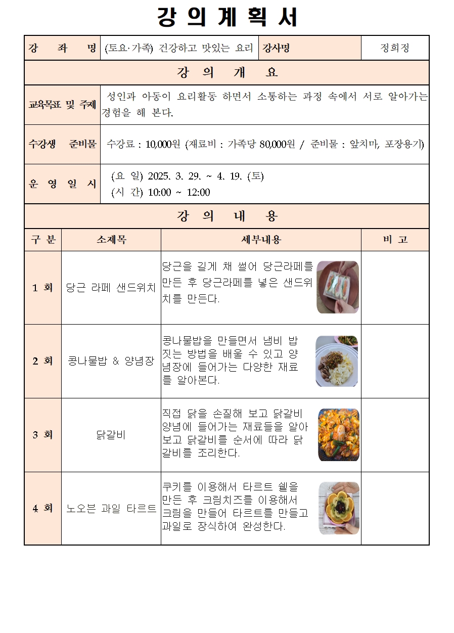 ★ 수강료 : 1인 1만원으로 가족당 2만원