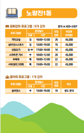 ※ 납부방법 : 동주민센터 직접 납부 및 계좌이체 (입금계좌 수강신청자에 한하여 별도 안내)