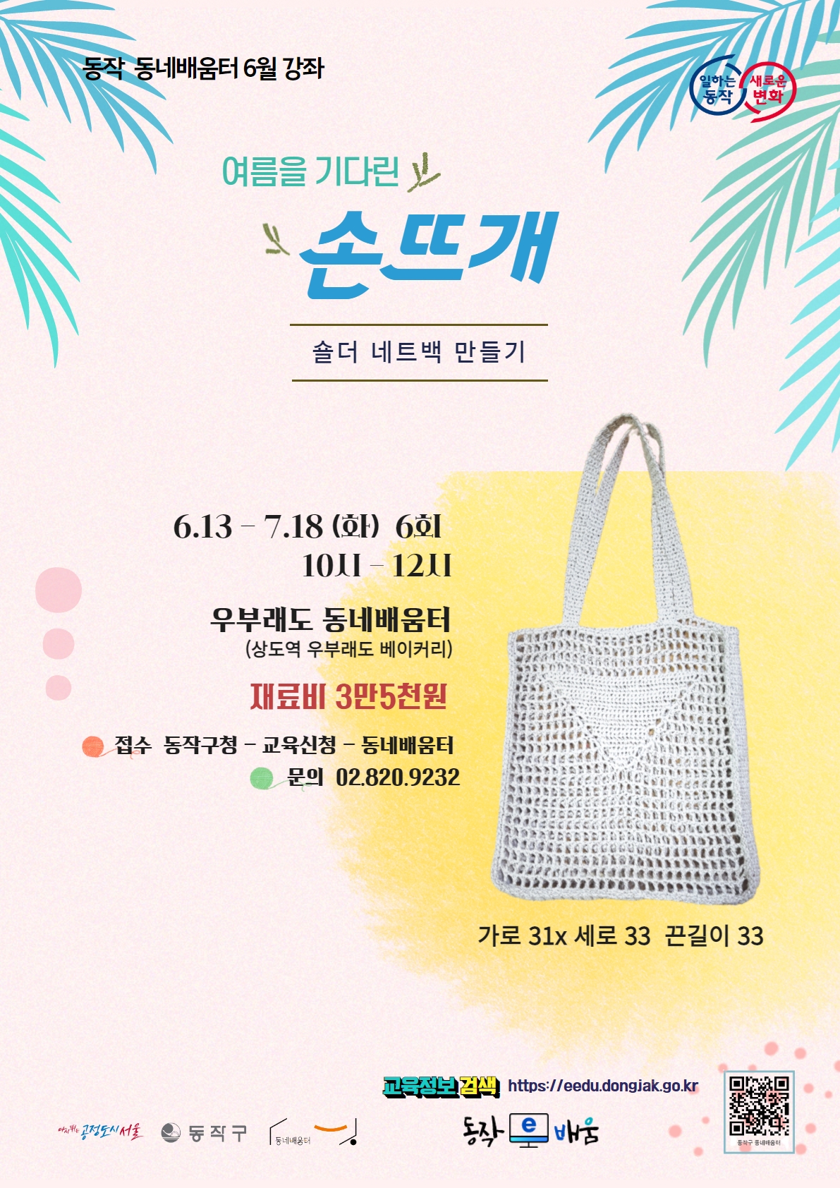 [6월 동네배움터 대면 강좌] 여름을 기다린 손뜨개(네트백)