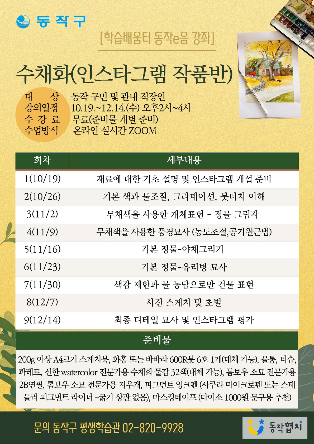 [학습배움터 동작e음 강좌] 수채화(인스타그램 작품반)