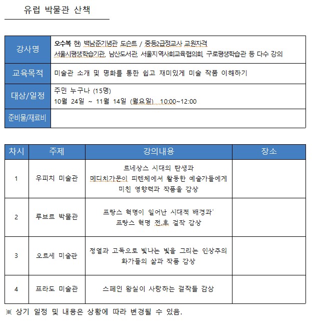 <10월 동네배움터 비대면 강좌> 유럽 박물관 산책