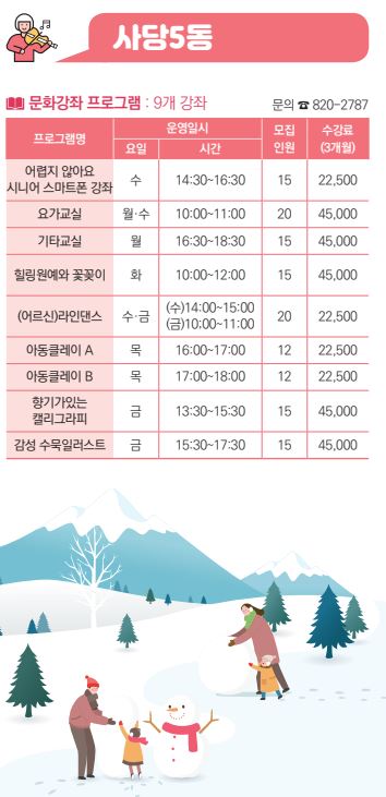 □ 강의장소 : 사당5동 주민센터 3층 다목적실