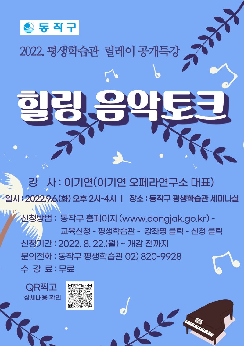 [평생학습관 릴레이 공개 특강 : 대면] 힐링 음악토크