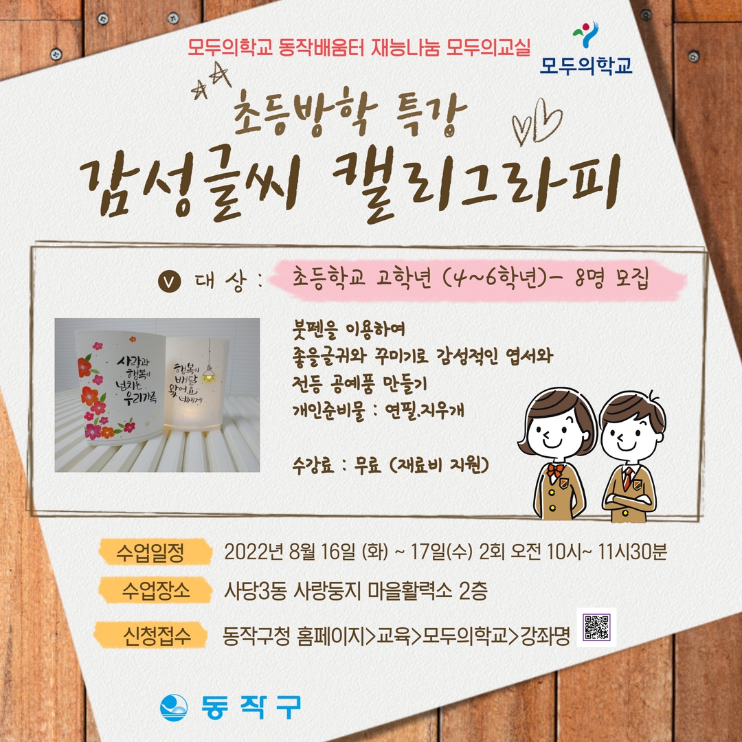 <2022.모두의학교 (재능나눔) 모두의교실 프로그램> 감성글씨 초등 캘리그라피 (방학특강)