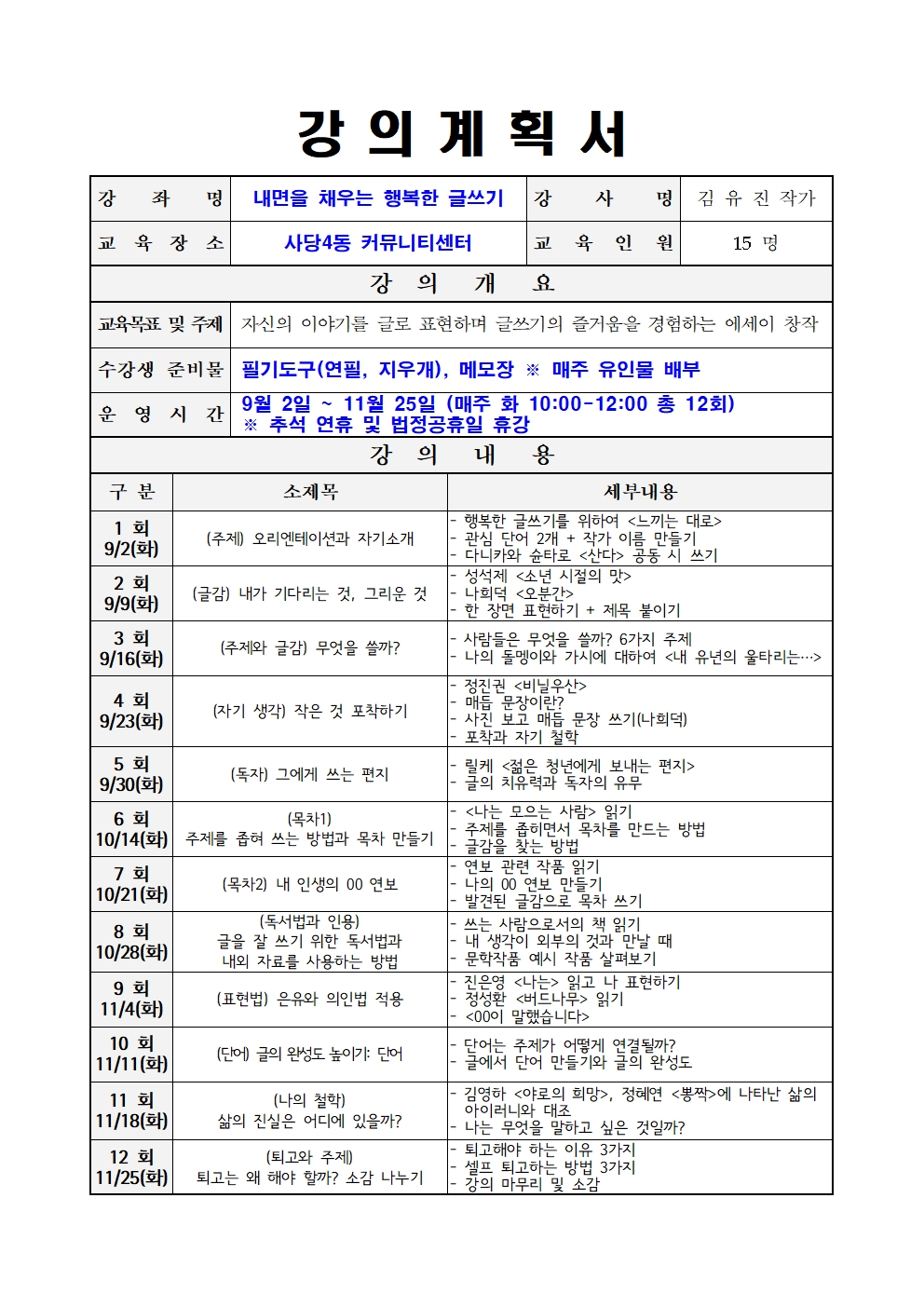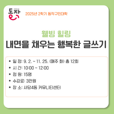 ★ 모집대상 : 동작구민 및 관내직장인