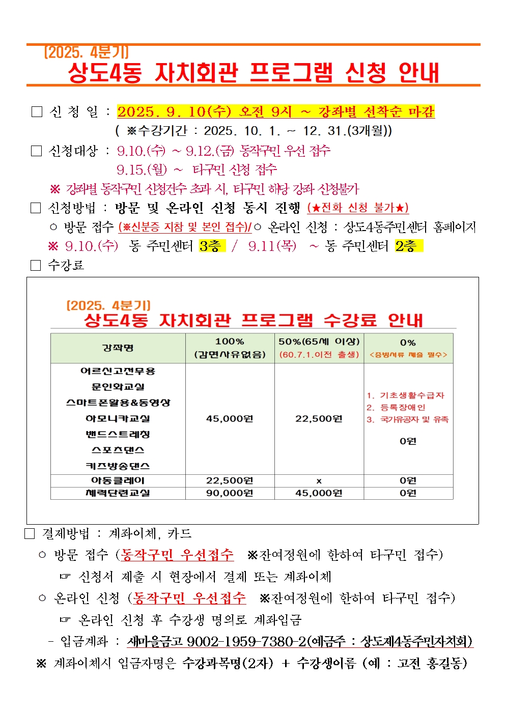 [상도4동] 2025년 4기(10월 ~12월) 어르신고전무용 수강생 모집