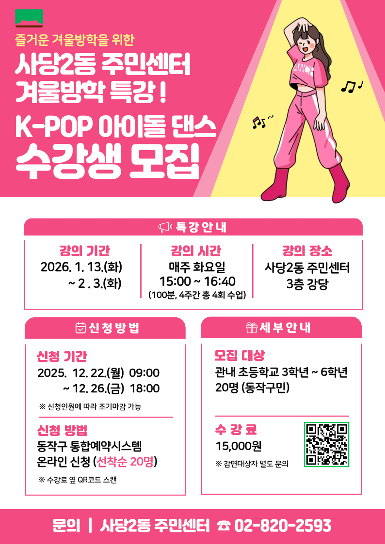 ○ 모집방법 : 동작구 통합예약시스템 온라인 신청(선착순 20명)