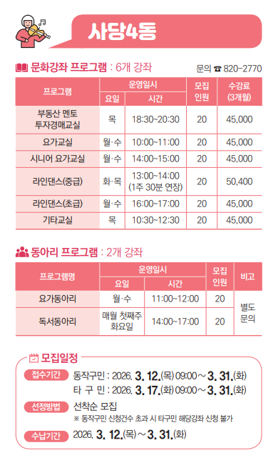 - 문 의 : 사당4동 주민센터(02-820-2770)