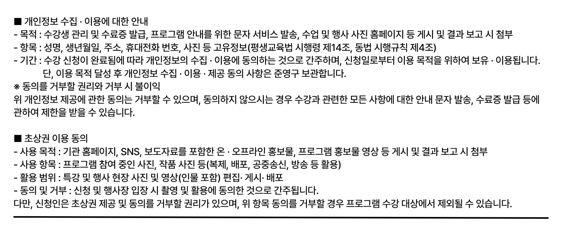 수강신청서 하단에 구체적인 예를 들어 간결하게 작성해주세요.