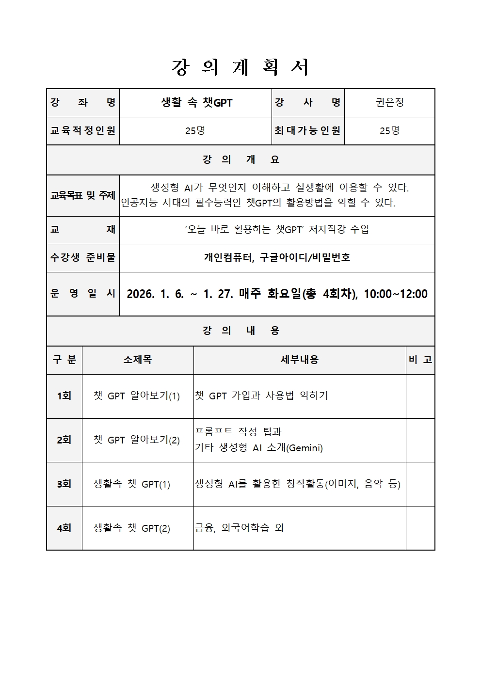ㅇ신청 전 반드시 아래 강의계획서강의 일정,장소 등을숙지하신 후 신중히 신청해 주세요!