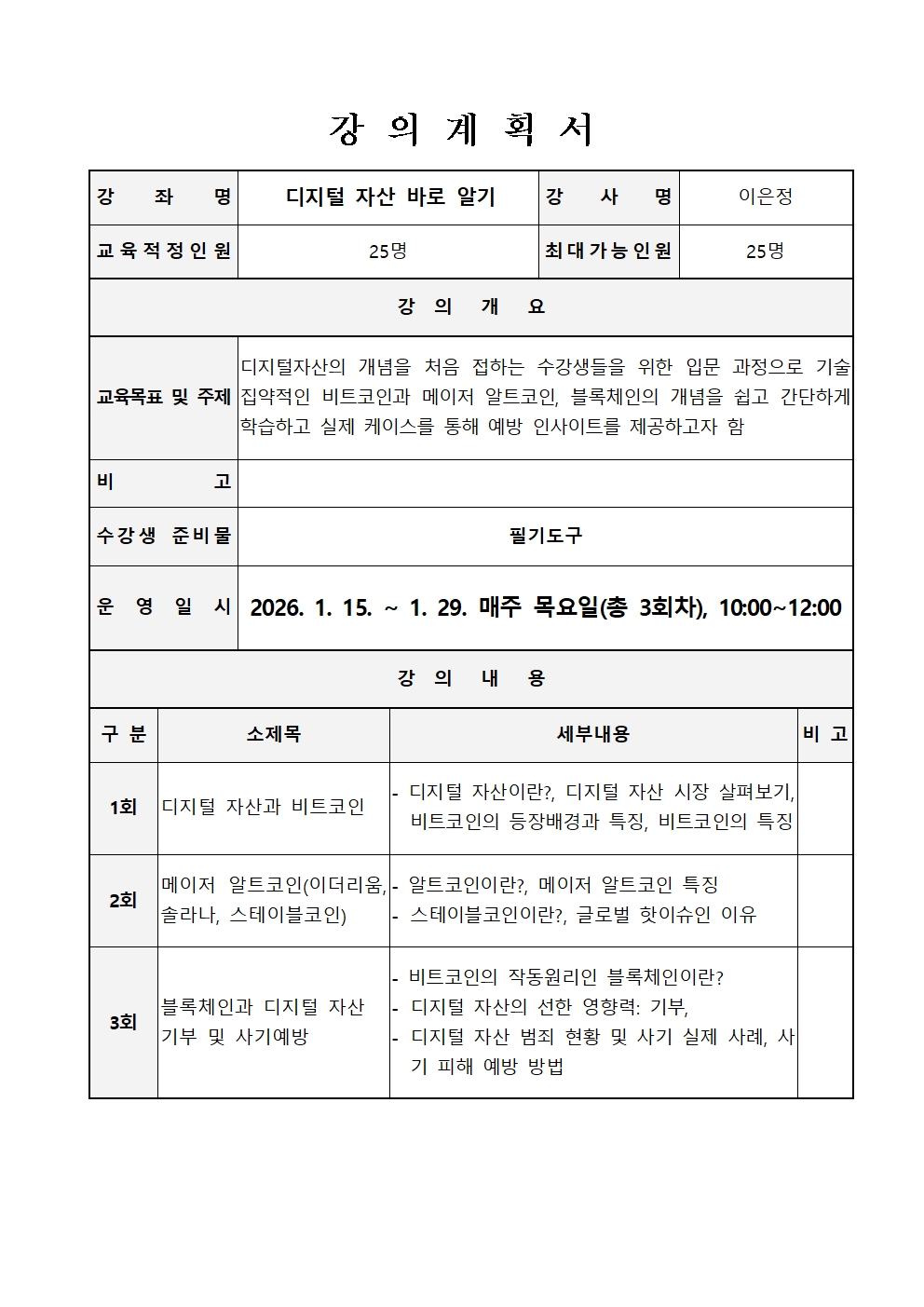 [동작구민대학 겨울방학 틈새강좌]디지털 자산 바로 알기