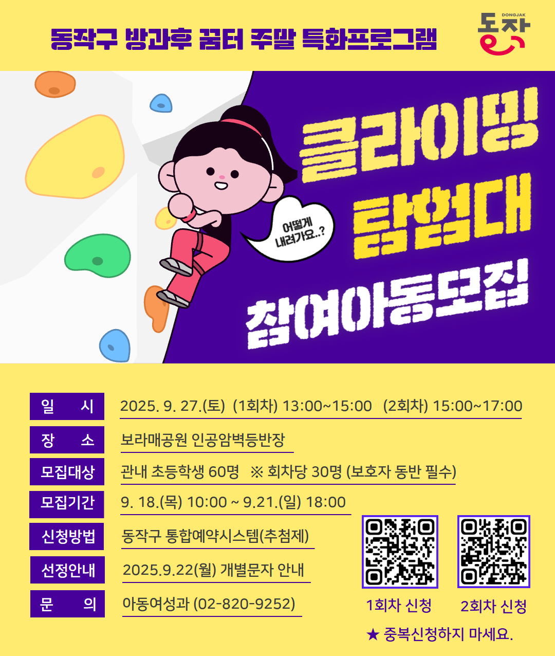 ※ 동일 아동 중복 신청 불가. 1회차, 2회차 중 반드시 선택 신청