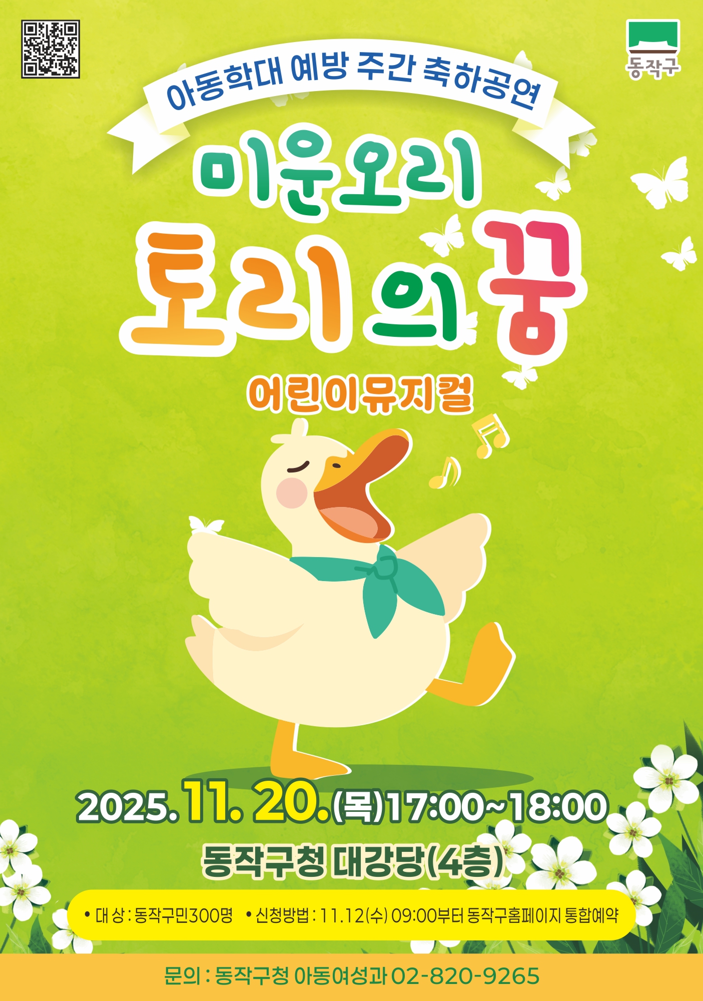 아동학대 예방주간을 맞아 어린이 창작 뮤지컬 '미운 오리 토리의 꿈'을 특별공연합니다.
